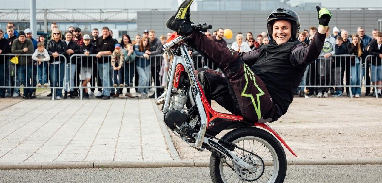 Die Bühne ist Standort für ein attraktives Mix aus Präsentationen, Interviews und Stunt-Shows. Motorradexperten erläutern technische Neuerungen, Materialentwicklungen und Leistungsdaten. Show-Acts begeistern mit spektakulären Stunts, während Live-Moderationen Hintergründe verständlich aufbereiten. Im Zentrum steht Stuntprofi Mike Auffenberg, der seine Kunststücke demonstriert und Fragen beantwortet. Er teilt persönliche Erfahrungen und schildert die anspruchsvolle Planung der GERMAN-Stuntweek. Dynamische Vorführungen kombiniert mit Interviews sorgen für ein lebendiges, informatives Erlebnis. Zuschauer erhalten exklusive, wertvolle Hintergrundinfo.
